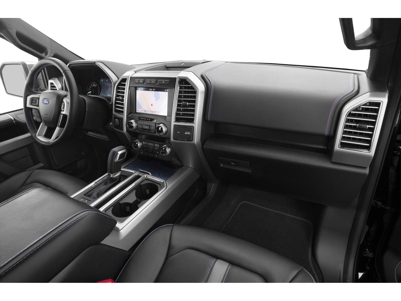Beyond its impressive performance, the F-150 Platinum pampers you with an array of premium features. Sink into the plush, multi-contour leather-trimmed seats, which can be heated and ventilated for year-round comfort. The voice-activated navigation system and premium B&O sound system keep you connected and entertained, while the lane-keeping system and 360-degree camera provide added peace of mind on the road.